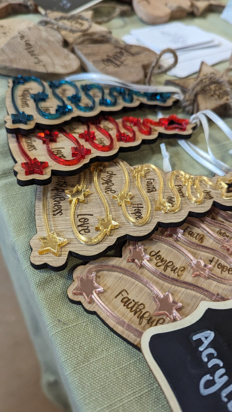 Handmade with care (and a laser!), these trees catch the light beautifully and look lovely on the tree or hanging in a cosy corner of your home. They also make thoughtful little gifts to pop in with a card, stocking or present.